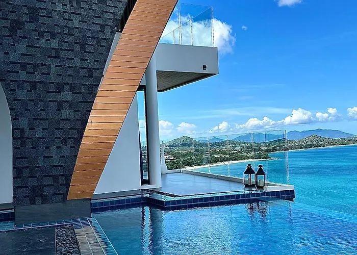苏梅岛观景台超级海景別墅Golden Coconut Villa 5 私密泳池 接送服务含早餐位于Lad Koh View Point旁边。 从别墅出发,您可以轻松到达View Point,此外距离Chaweng Viewpoint只有100米。